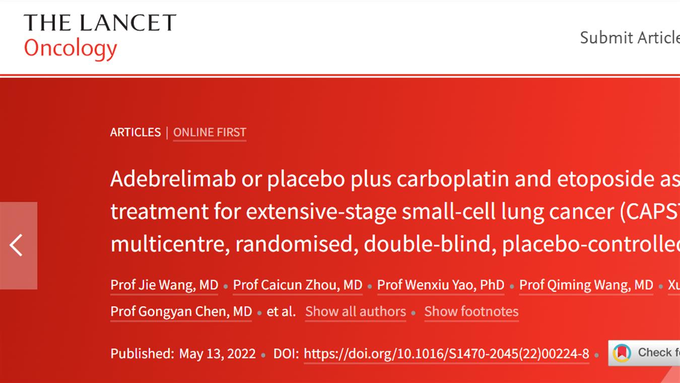 DG视讯卡瑞利珠单抗联合阿帕替尼最新研究成果荣登《柳叶刀·肿瘤》